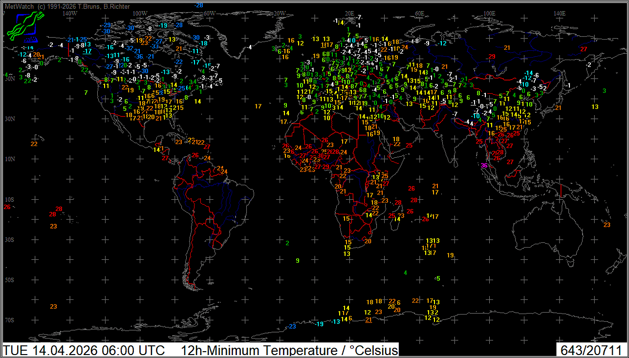Minimum Temperatur Welt