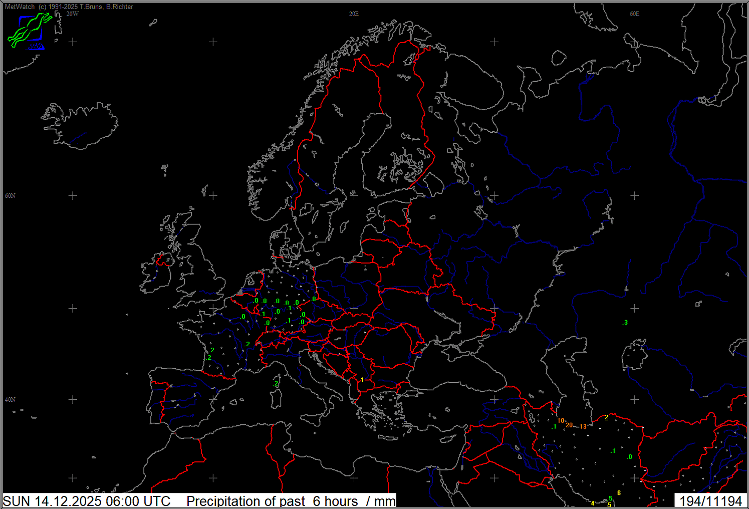 Niederschlag letzte 6 Stunden Europa