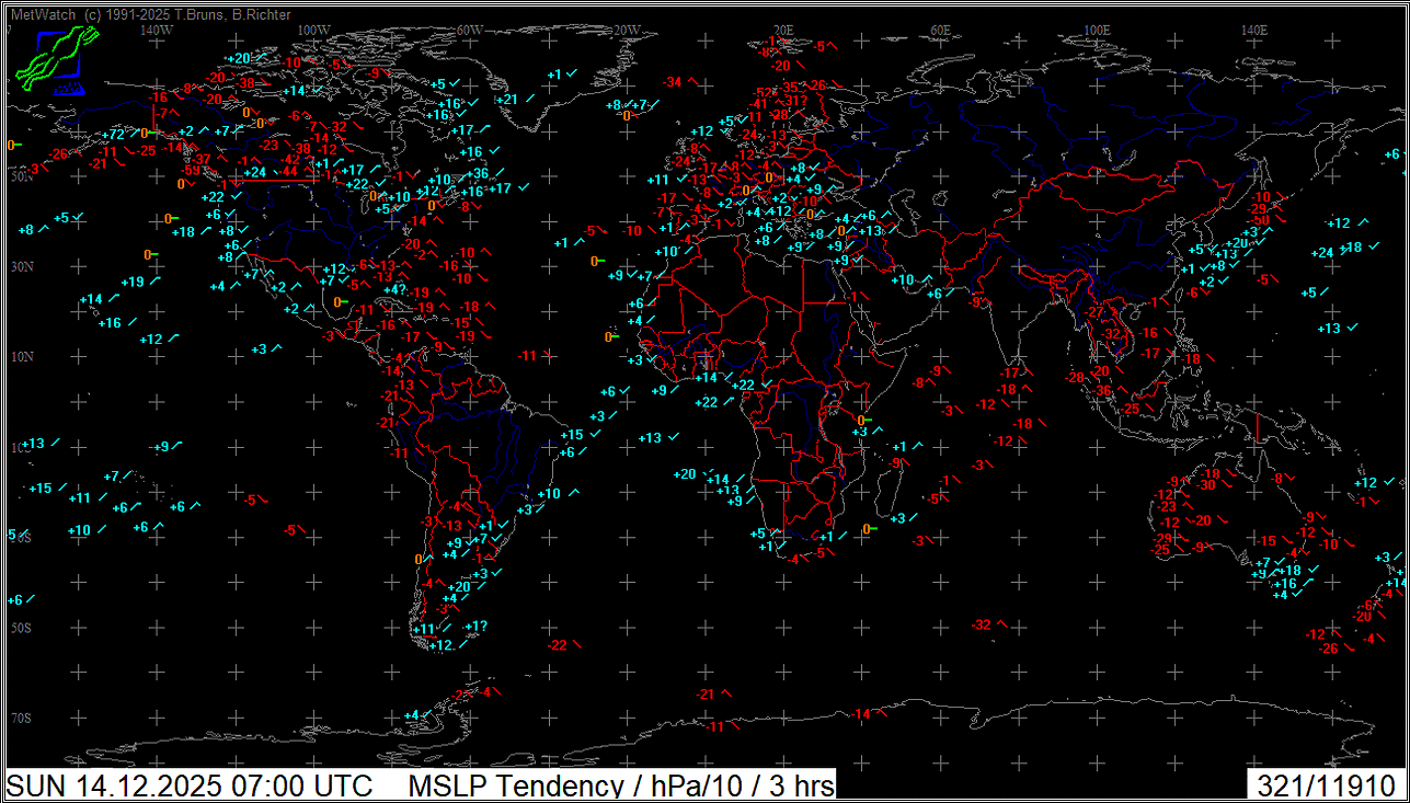 Aktuelle Luftdruckänderung Welt