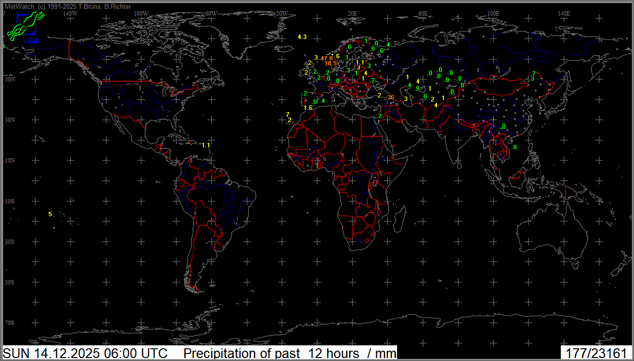 Niederschlag letzte 12 Stunden Welt