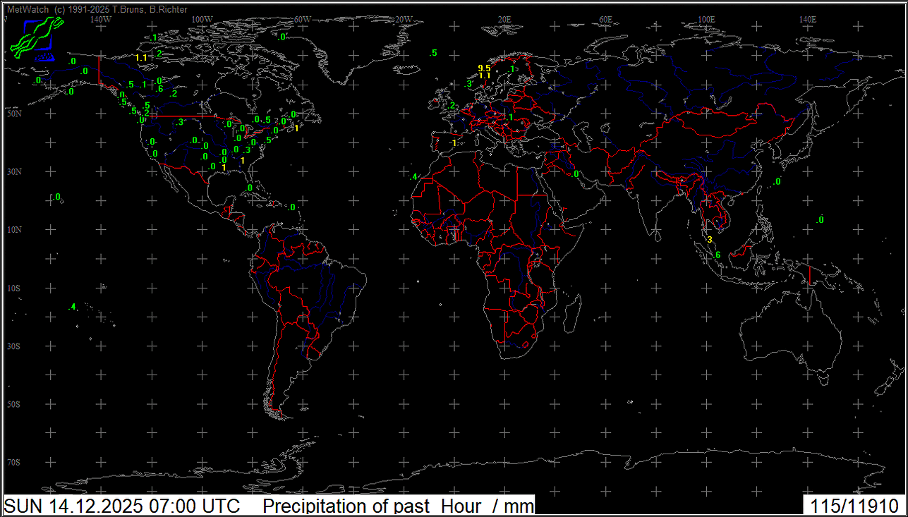 Niederschlag letzte Stunde Welt
