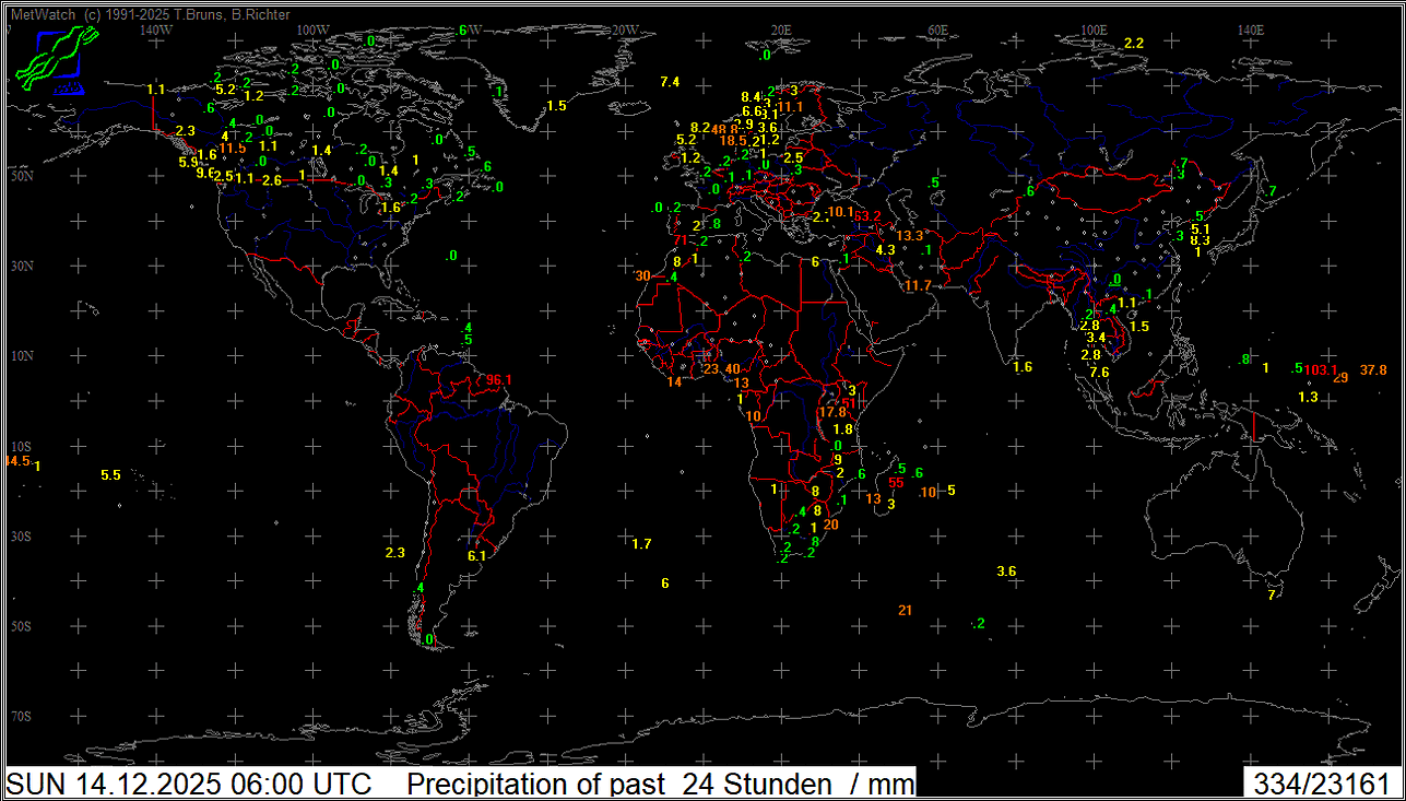 Niederschlag letzte 24 Stunden Welt